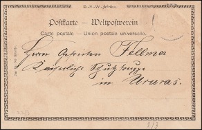 Diese Karte vom „23.08.1896“ ist somit die früheste bekannte Ansichtskarte aus DSWA.