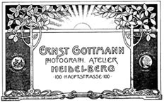 Ernst Gottmann wird am 7. August 1874 geboren und gründete in Heidelberg 1889 sein „Portrait-Geschäft“. 1899 heiratet er Lina Schellmann. Gottmann war Mitbegründer der „Heidelberger Fachphotographen“ und photographierte Personen und aktuelle Geschehnisse seiner Zeit. Auch Bilder aus seinen Reisen in die Kolonien waren Zeugnisse seines Schaffens. 1932 starb Ernst Gottmann in Heidelberg und sein Sohn Ernst Gottmann jun. Übernahm das Geschäft.