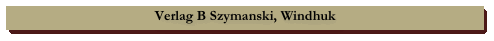 Über den Verlag und der Person B. Szymanski, Windhoek konnten keinerlei Informationen recherchiert werden. Weder im Windhoeker Archiv noch in den Telefonbüchern ist hier was registriert. Es wurden Ansichtskarten von verschiedene Photographen verausgabt, z. B. von G. Lange und R. Wywias.