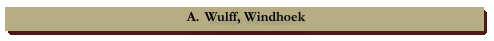 August Engelbert Wulff ( 03.11.1878 – 25.11.1951) wanderte bereits 1897 im Alter von 19 Jahren nach Deutsch-Südwestafrika aus und gründete ein Warenhaus in Swakopmund und Windhoek.