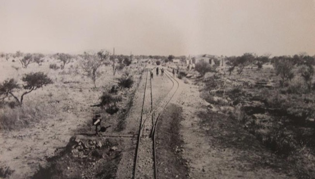 Originalfoto: „Bahnhofsgelände der Asis Mine, im Hintergrund rechts das Stationsgebäude“ [1] | |