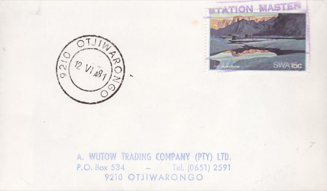 05.06.1981: Brief aus Kombat mit Stempel R. 1 nach Otjiwarongo, befördert auf der Zweiglinie bis Otavi und weiter auf der Nordlinie [1] | |