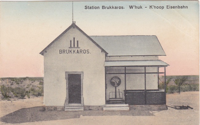 Die Station BRUKKAROS erhielt ihren Namen durch den in der Nähe liegenden 1586 hohen Kraterberg „Großer Brukkaros“. Diese Bahnstation ist die Nr. 15 auf der Nord – Südbahn bei km 402 von Windhuk, km 105 vor Keetmanshoop und öffnete im April 1911. Eine Poststelle bestand nicht. Später wurde es die Haltestelle Nr. 1014/6.