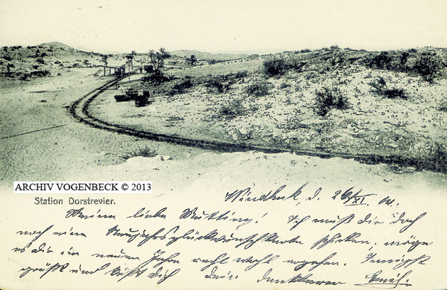 Text: | Kaiserliche Eisenbahn Station DORSTRIVIER Eingeg: 12 FBR 1909 |