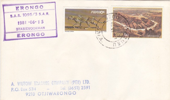 15.06.1981: Brief aus Erongo mit Stempel R. 1 nach Otjiwarongo, befördert auf der Nordlinie [1] | |