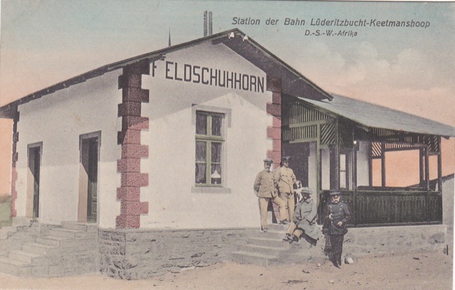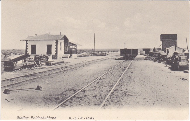 Die 13. Haltestelle auf der Südbahnlinie ist FELDSCHUHHORN bei km 287 von Lüderitzbucht. Die Eröffnung ohne Poststelle erfolgte am 30. November 1907.