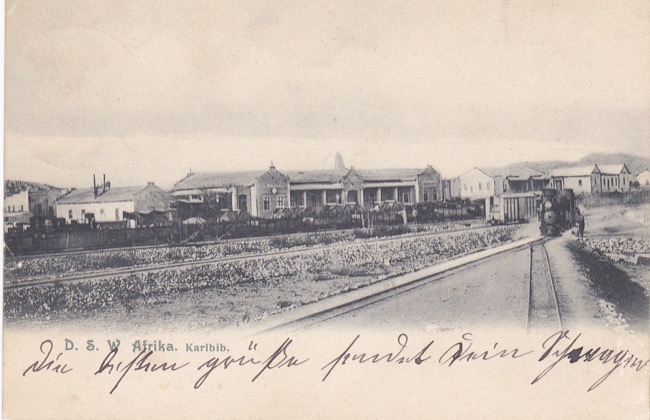 Die Eröffnung der Teilstrecke von Swakopmund bis KARIBIB fand am 1. Juni 1900 statt. Karibib ist die 14. Station der Staatsbahnlinie bei km 195. Am 23. Mai 1905 konnte die Gleisverbindung der Otavibahn an die Staatsbahn fertiggestellt werden. Somit gab es zwei Bahnhöfe auf der Station Karibib. Die Posthilfsstelle öffnete einen Monat später am 1. Juli 1900. Die Umspurung der Strecke Karibib – Windhoek erfolgte durch die DSWAE (Deutsch-Südwestafrikanische Eisenbahn) auf 1067 mm von April 1910 bis zur Eröffnung am 22. August 1911. Während des Umbaus konnte der Feldspurbetrieb auf dritter Schiene aufrechterhalten bleiben.