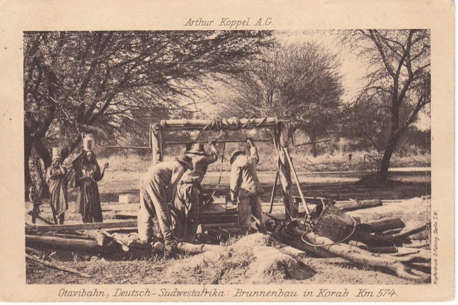 „Otavibahn, Deutsch-Südwestafrika : Brunnenbau in Korab Km 574“ (die km Angabe der Bahnbaufirma Arthur Koppel AG ist falsch) [1] | |