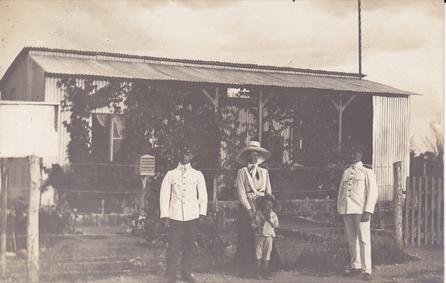 Bahngebäude in Otavi mit Stationsvorsteher und Familie [1] | |