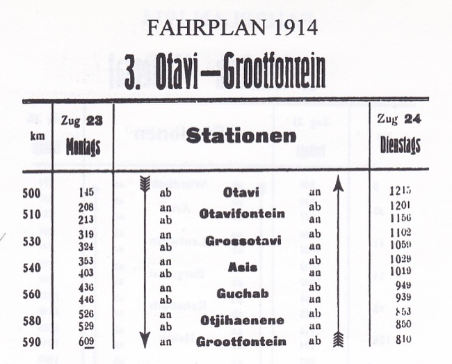Die 1. Station der Zweiglinie in Richtung Grootfontein OTAVIFONTEIN lag 7 km nach Otavi und öffnete im Juli 1907 ohne Poststelle.