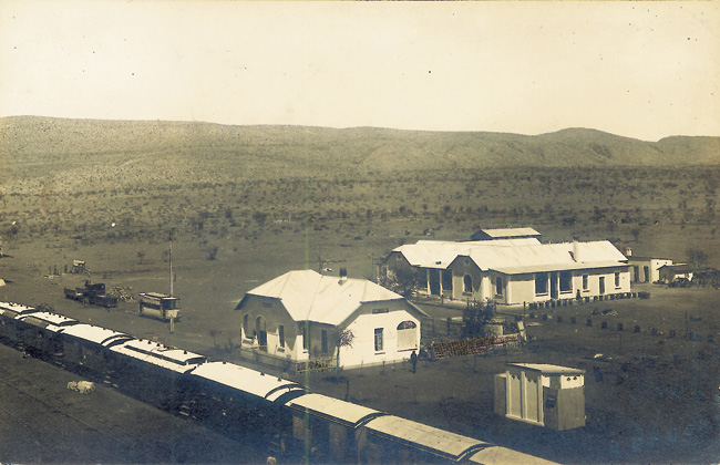 Station Rehoboth, links daneben die kleine Feldspurbahn nach Rehoboth Stadt, dahinter das Hotel [2] | |