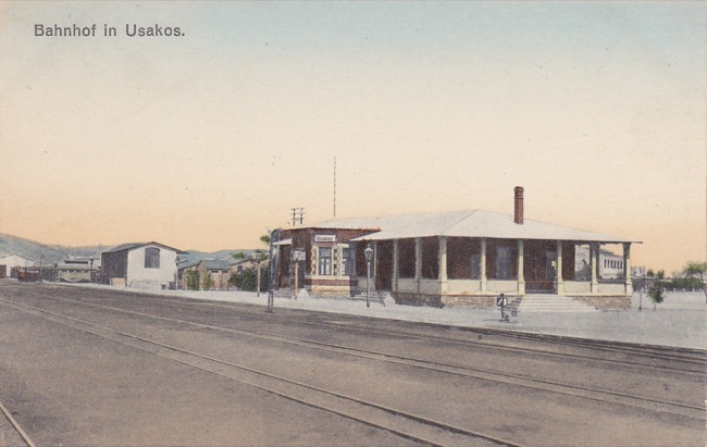 Die 10. Station USAKOS auf der Otavibahnlinie bei km 151 öffnete im März 1905. Hier richtete man den Sitz der Bahnbetriebsdirektion und das Hauptausbesserungswerk ein. Bis hierhin musste die Strecke von Swakopmund mit Kesselwagen versorgt werden. Eine Postagentur wurde bereits am 1. November 1904 eröffnet.